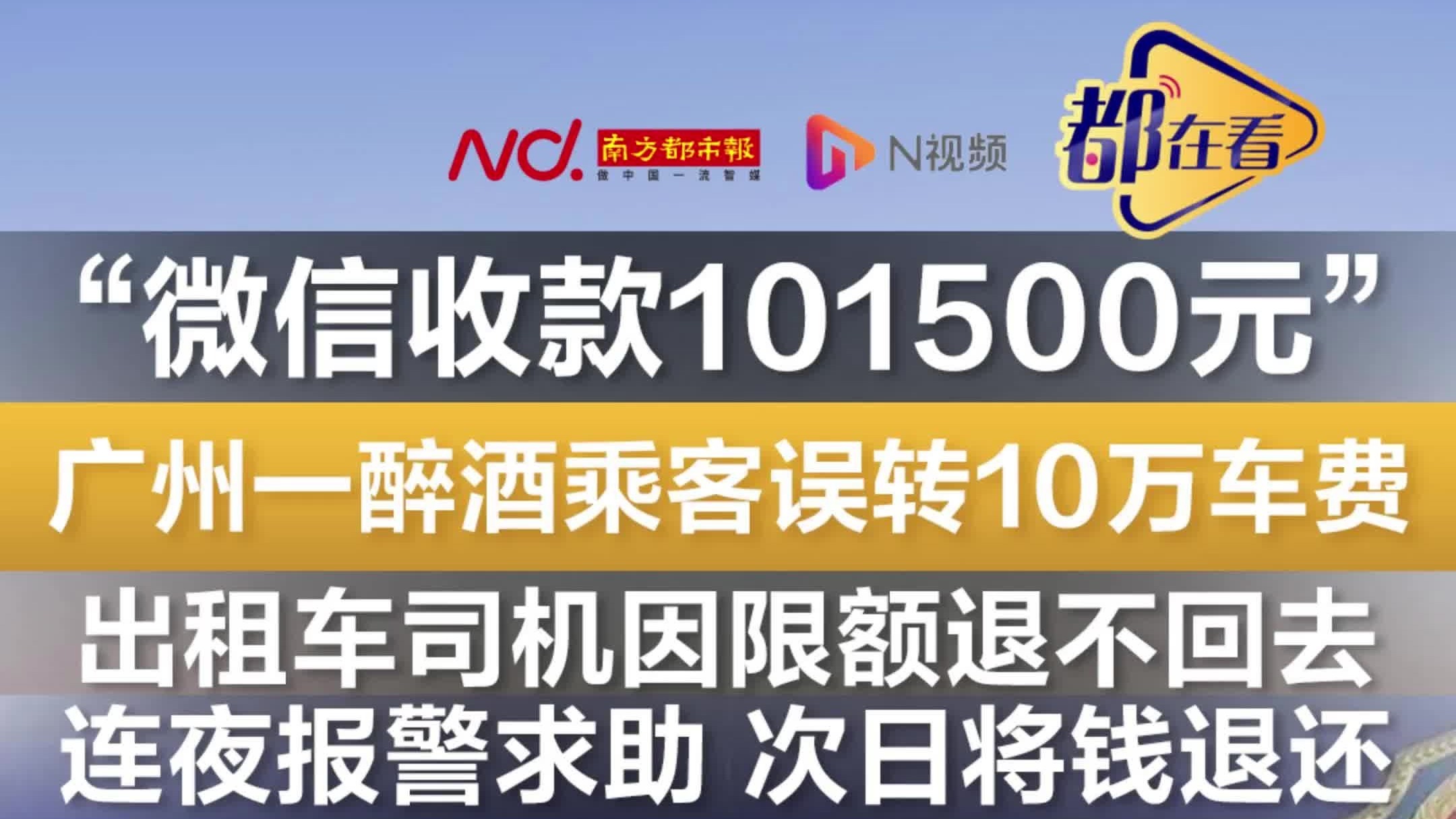 广州一醉酒乘客误转10万车费,出租车司机退不回去连夜报警