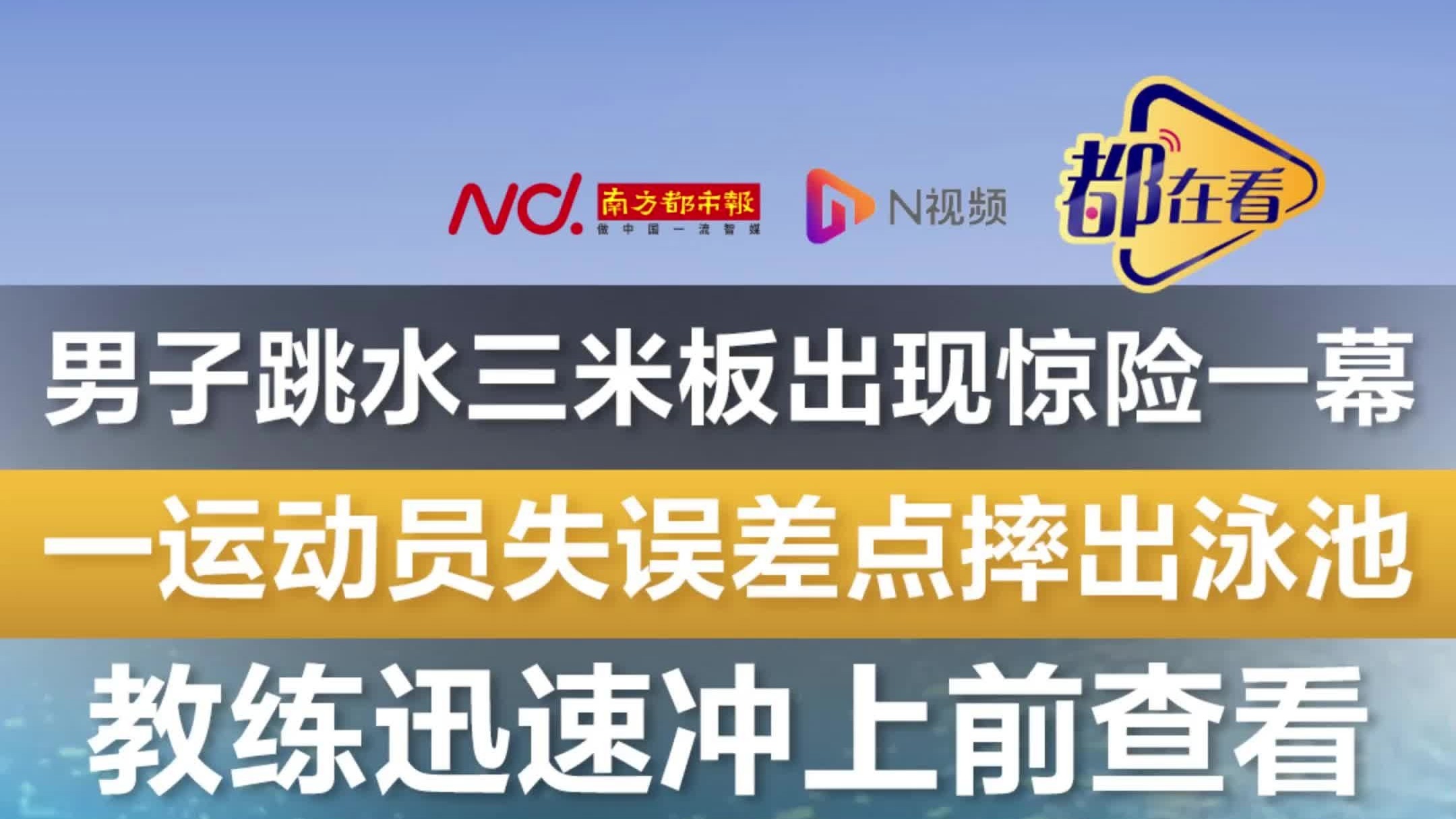 男子跳水三米板比赛出现惊险一幕,一运动员失误差点摔出泳池
