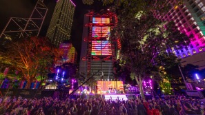 香港跨年倒数中环举行,八幢建筑物出现倒数时钟以及光影图案