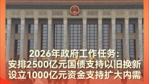 2026年政府工作任务:安排2500亿元国债支持以旧换新