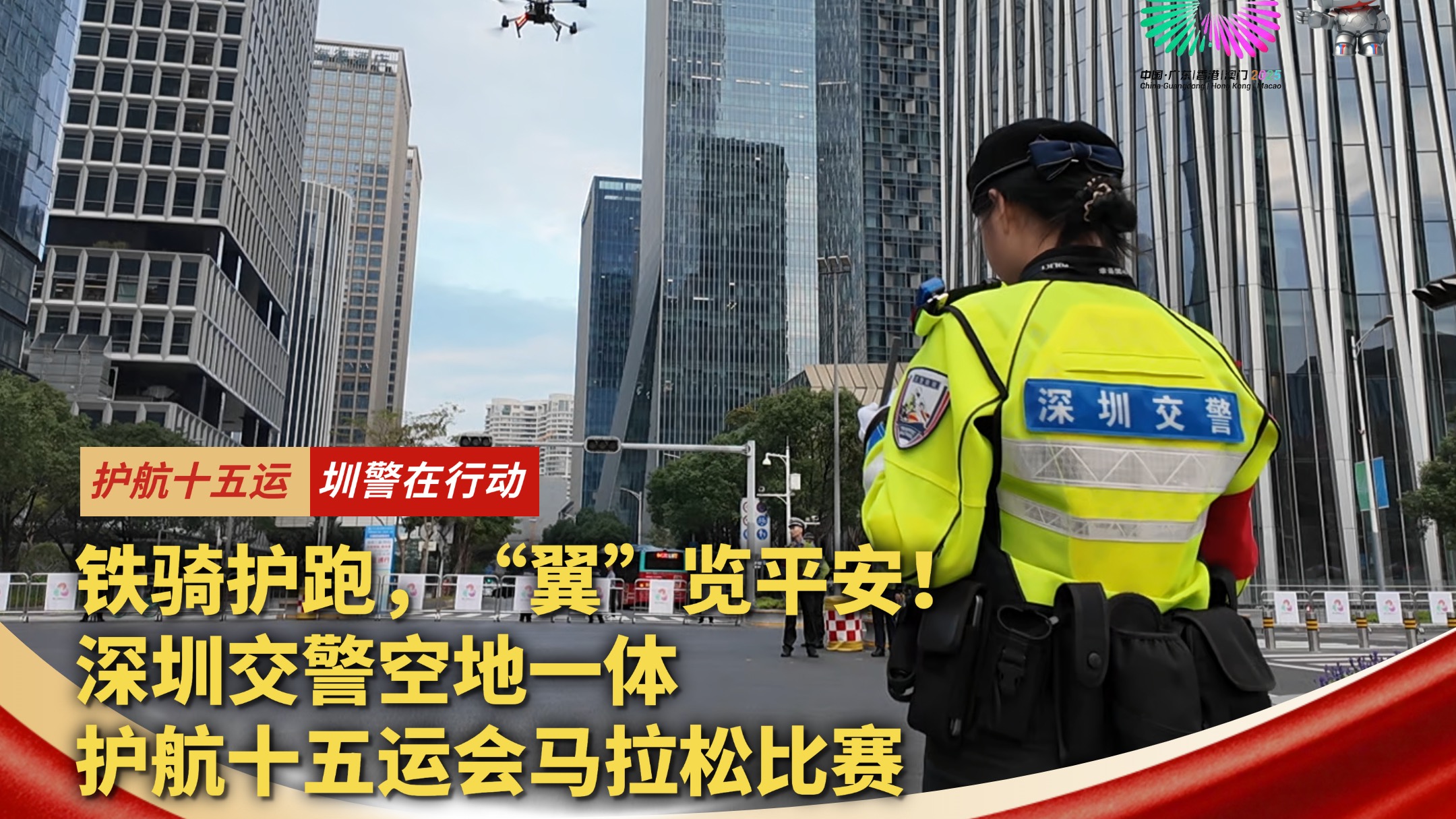 深圳交警空地一体护航十五运会马拉松比赛
