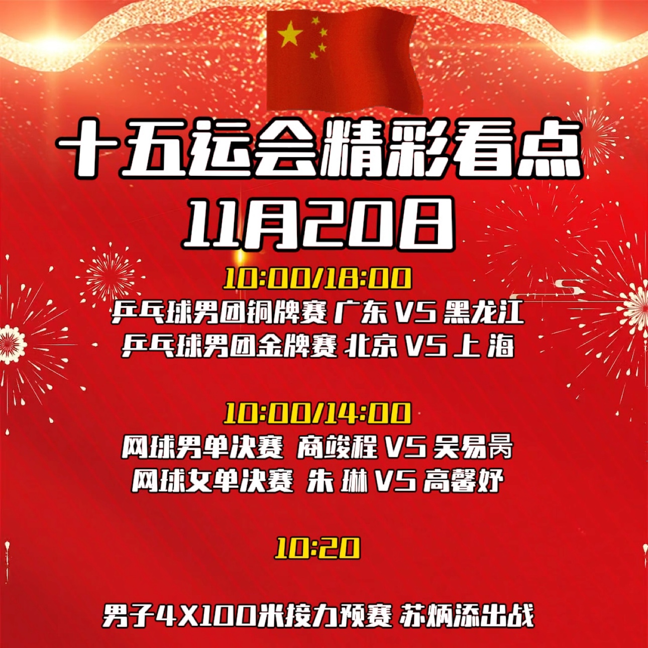 11月20日,全运会精彩看点。苏炳添最后一舞!