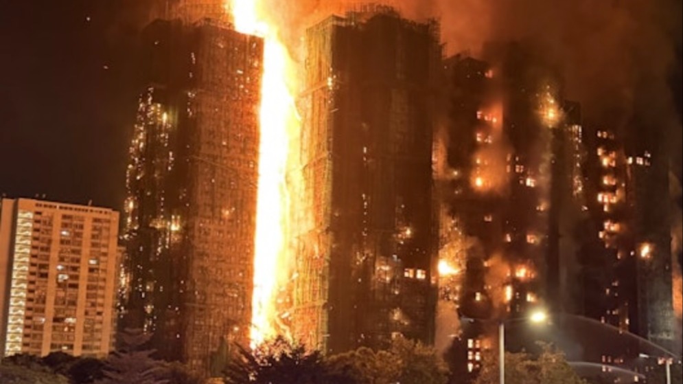 香港大埔7座大厦起火,消防称因火场高温暂未能到达高层救援