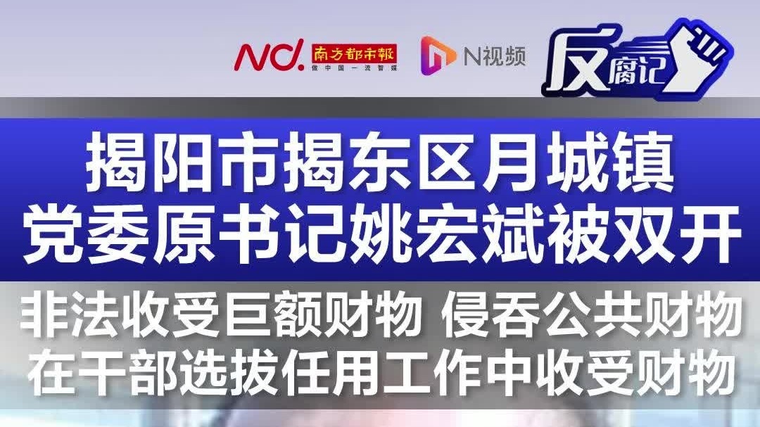 揭阳市揭东区月城镇党委原书记姚宏斌被双开