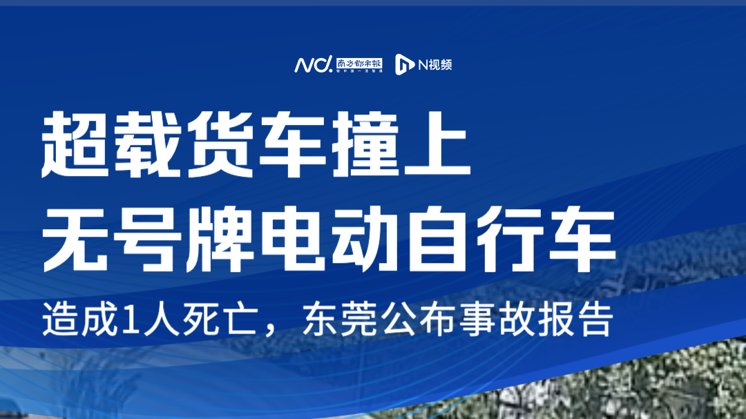东莞一超载货车撞上无号牌电动自行车,造成1人死亡