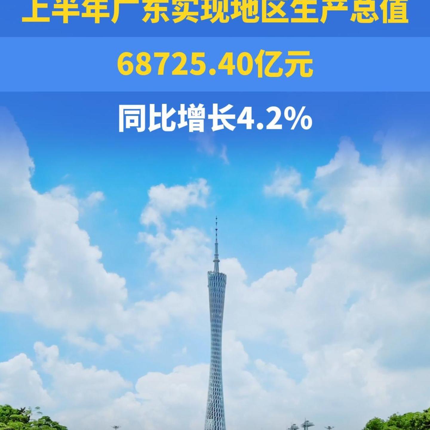 上半年广东实现地区生产总值68725.40亿元,同比增长4.2%