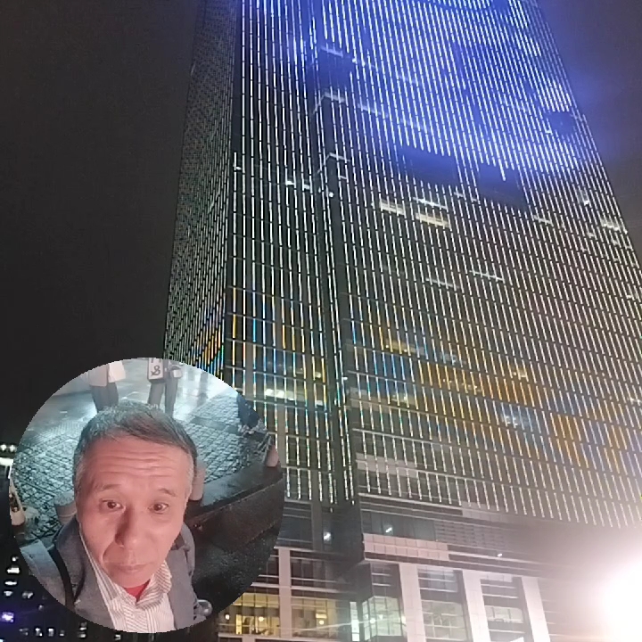 武汉新天地高楼直插云霄霓虹灯在云霄中闪烁