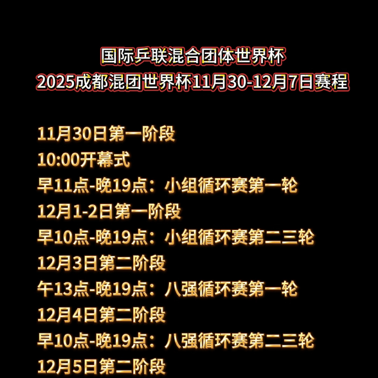 2025成都混团世界杯11月30-12月7日赛程安排…