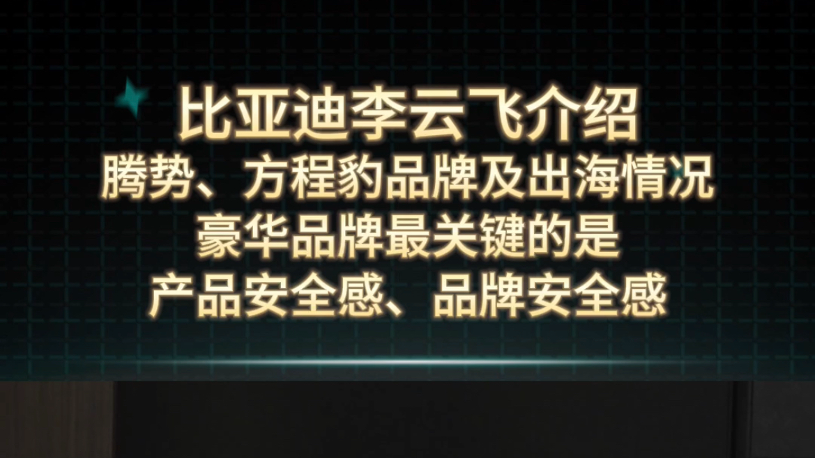 比亚迪李云飞介绍腾势、方程豹品牌及出海情况