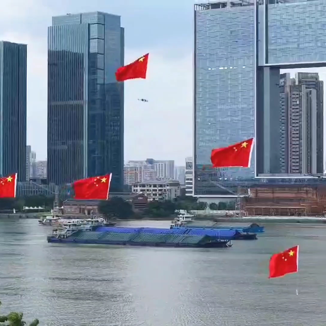 国庆节挂红旗,普天同庆,伟大复兴,大疆无人机航拍广州之窗