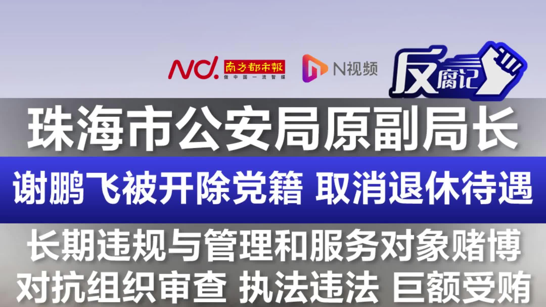 珠海市公安局原党委委员、副局长谢鹏飞被开除党籍