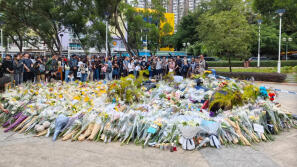 香港花店放置免费鲜花供悼念,市民排队一小时只为送上心意