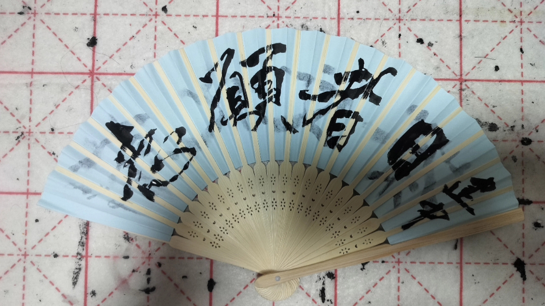 我的折扇书写“世界志愿者日”,配乐是我的手风琴演奏。