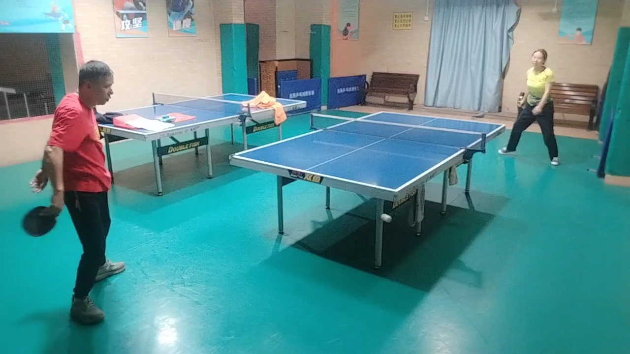 巾帼不让须眉。今日三八,打乒乓球。