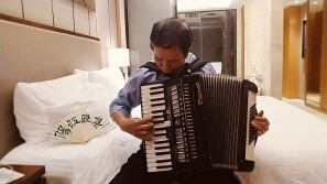 军港之夜,阳江雅集。在阳江华邑酒店手风琴演奏一曲军歌。