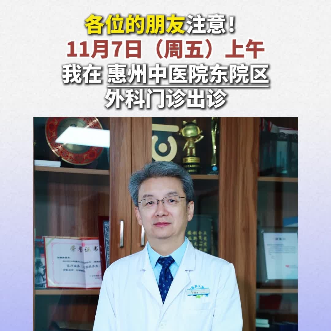 本周五在“惠州中医院东院区”外科出诊,需要朋友可就近挂号