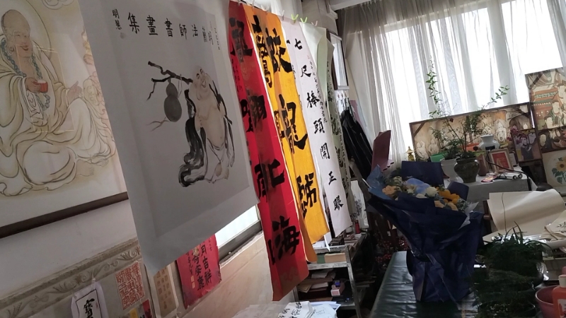 来到佛山南海里水镇的明兰法师的书画琴工作室