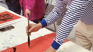 在花都围棋赛现场我书写一个篆体福。