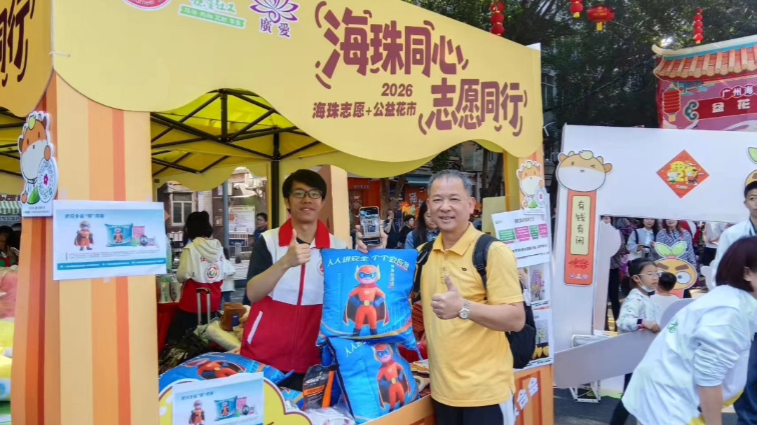 海珠区滨江路花市 ,安全福袋送平安,应急知识暖人心。