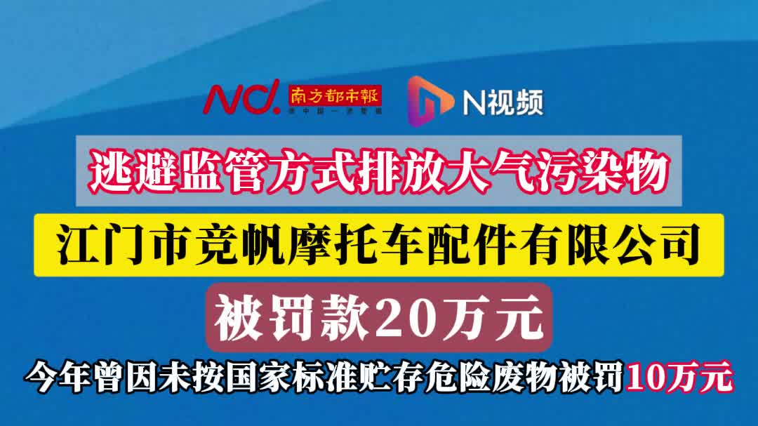 逃避监管排放污染物,江门市竞帆摩托车配件公司被罚20万元