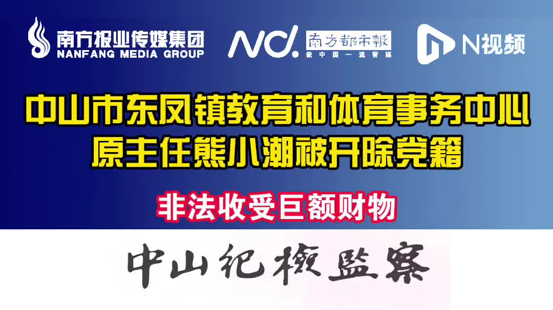 中山市东凤镇教育和体育事务中心原主任熊小潮被开除党籍
