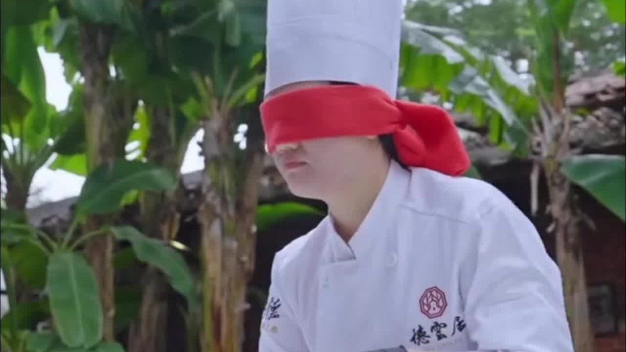 顺德女厨师蒙眼、反手切生鱼片