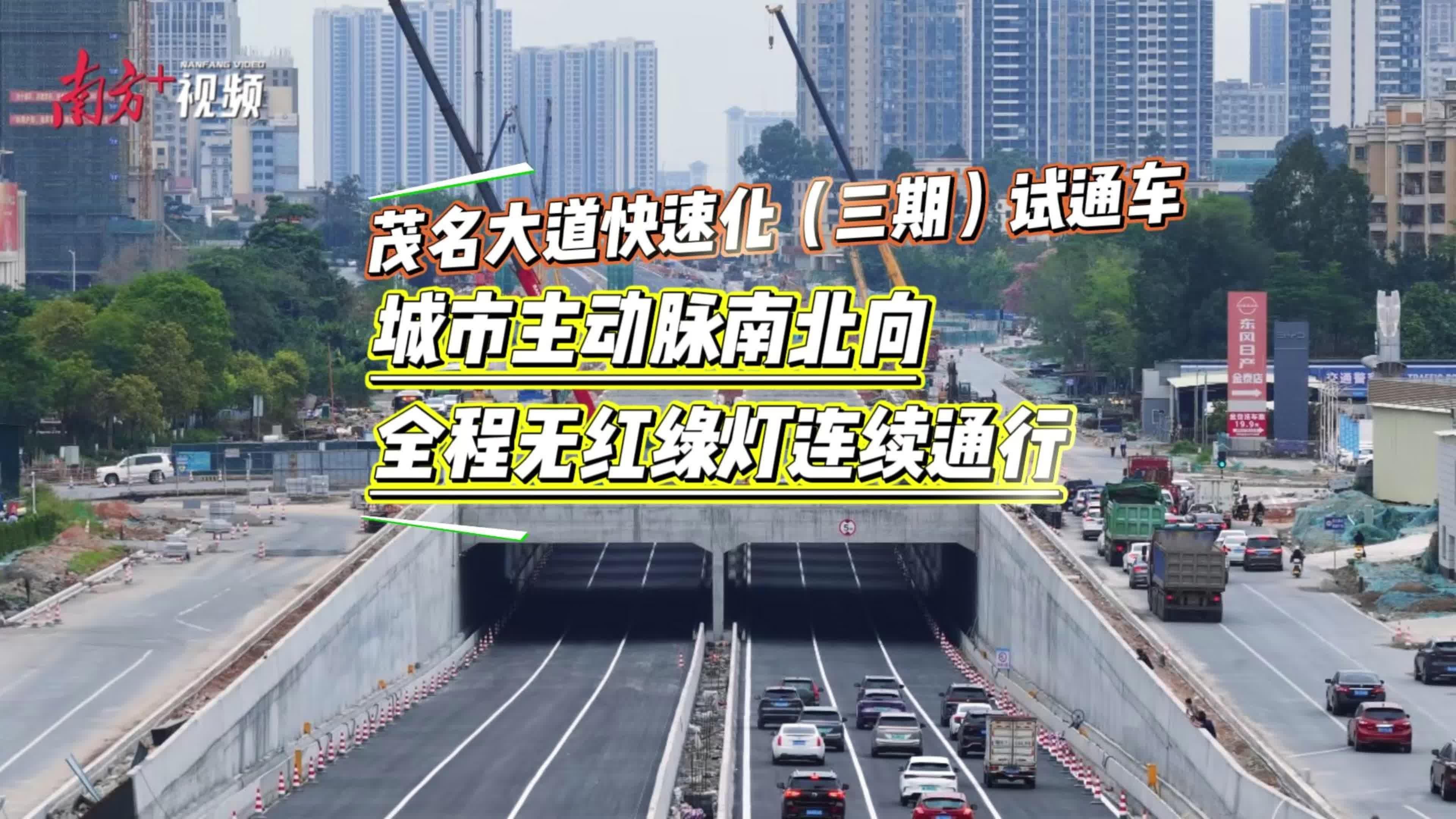 视频|茂名大道快速化(三期)试通车,城市主动脉南北向全程无红绿灯连续通行
