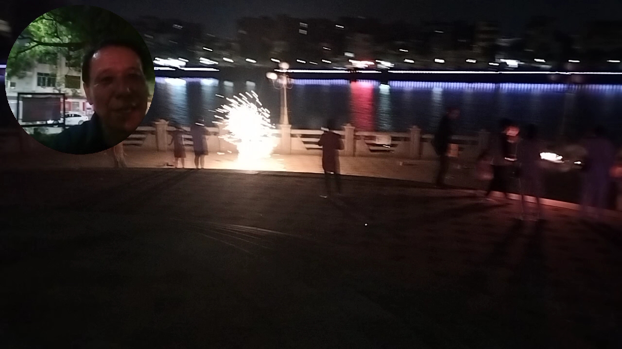 过年了,放鞭炮。阳春市漠阳江畔。