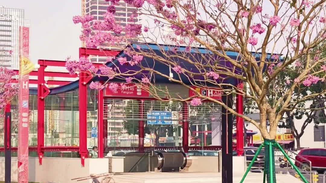 紫花风铃木亮相芳村地铁新出口