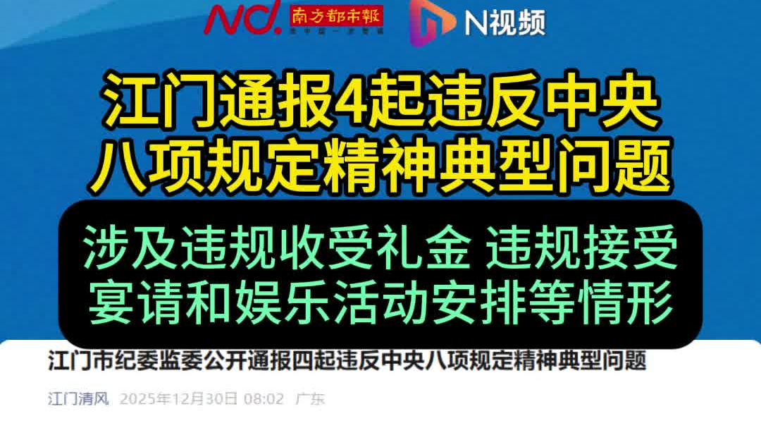 江门通报4起违反中央八项规定精神典型问题