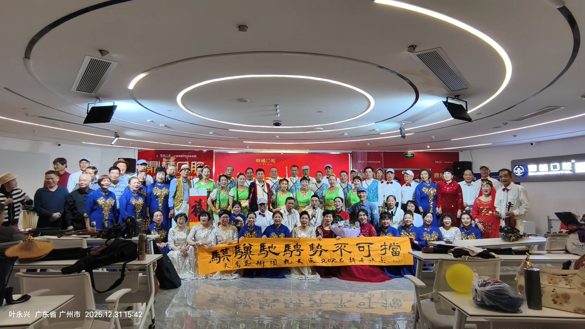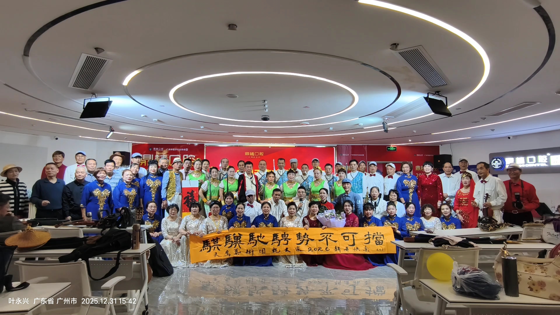 携我书写的大横幅和折扇在鼎植剧场参加天鹰艺术团新年音乐会