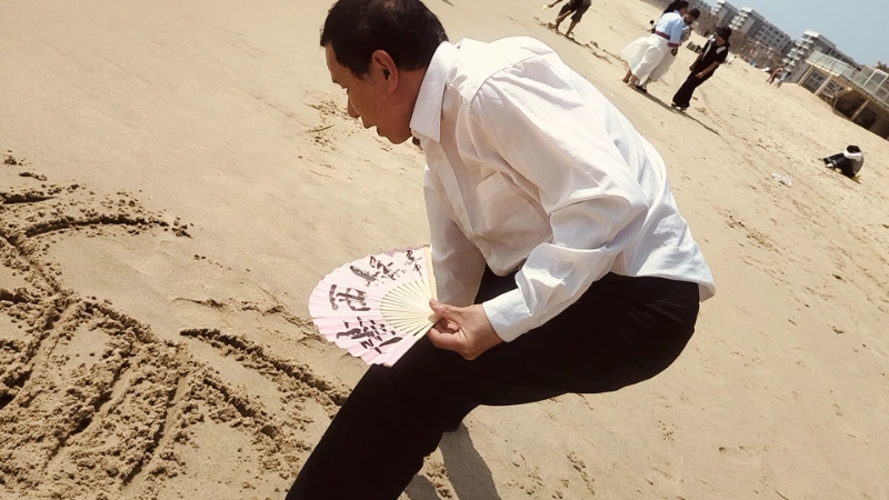 在阳西月亮湾海滩上,我篆书一个“马”,祝大家马年新春快乐
