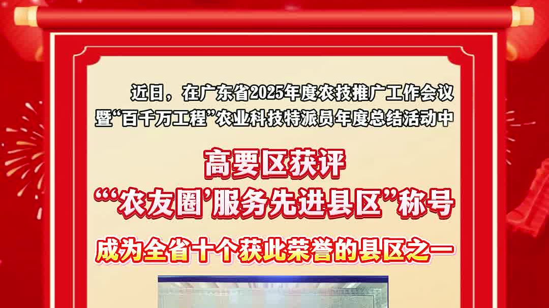 高要区获评“‘农友圈’服务先进县区”称号