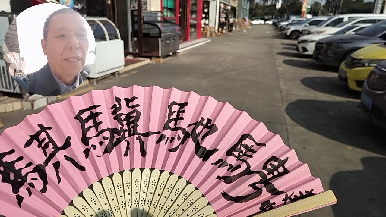 我的折扇书写视频。视频背景音乐是我的手风琴演奏