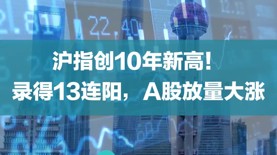 沪指创10年新高!录得13连阳,A股放量大涨