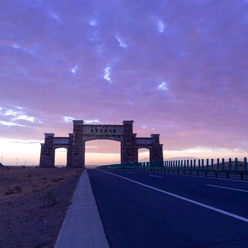 腾格里沙漠-梦想公路牌坊日出