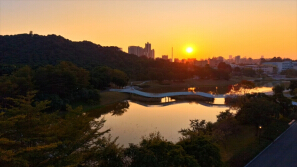 深圳光明新陂头南湿地,落日谱写浪漫恋曲
