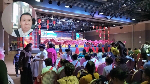 载歌载舞欢庆警察节。正在马服装城参加演出。