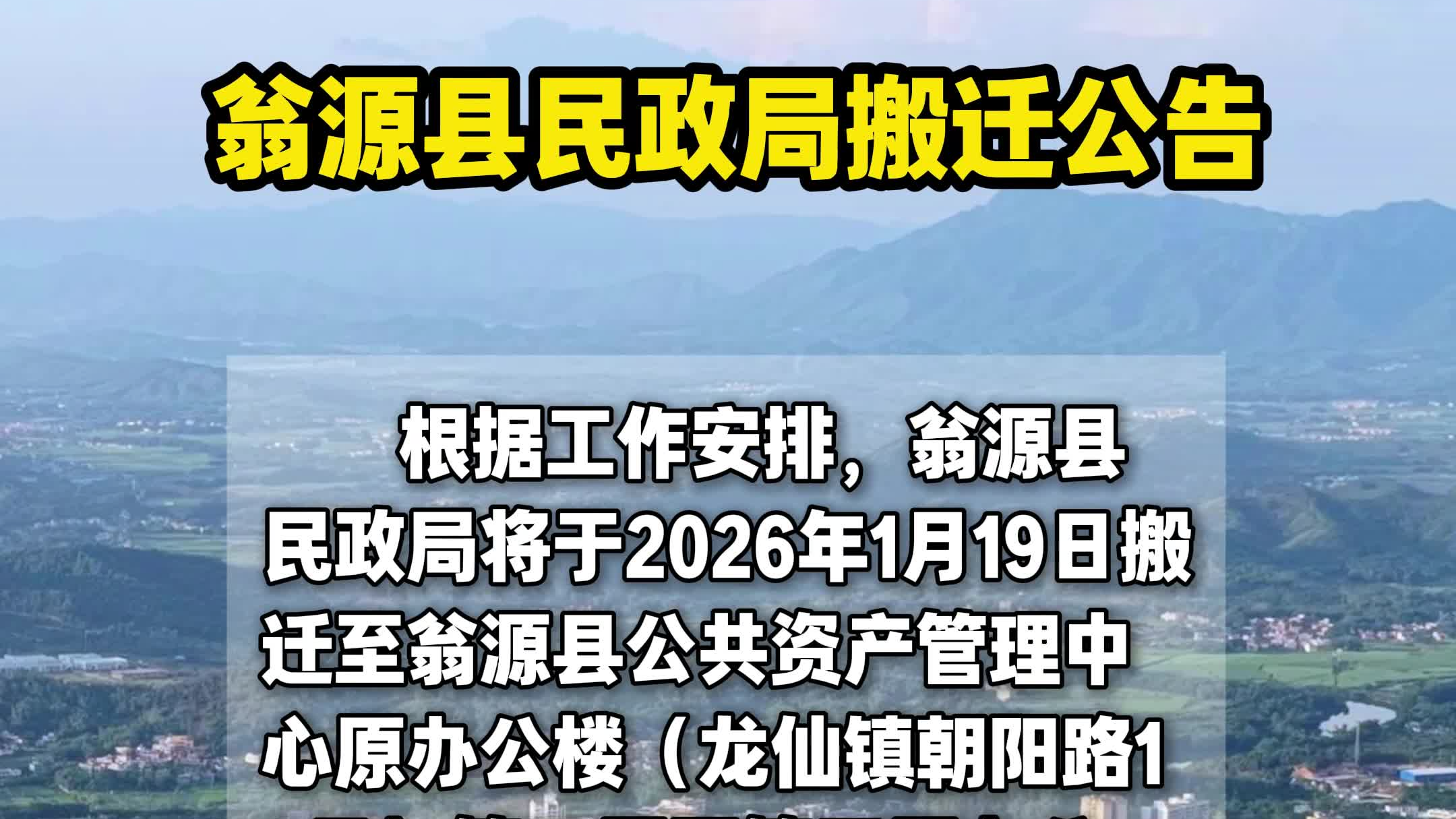 翁源县民政局1月19日搬迁至这里……#翁源