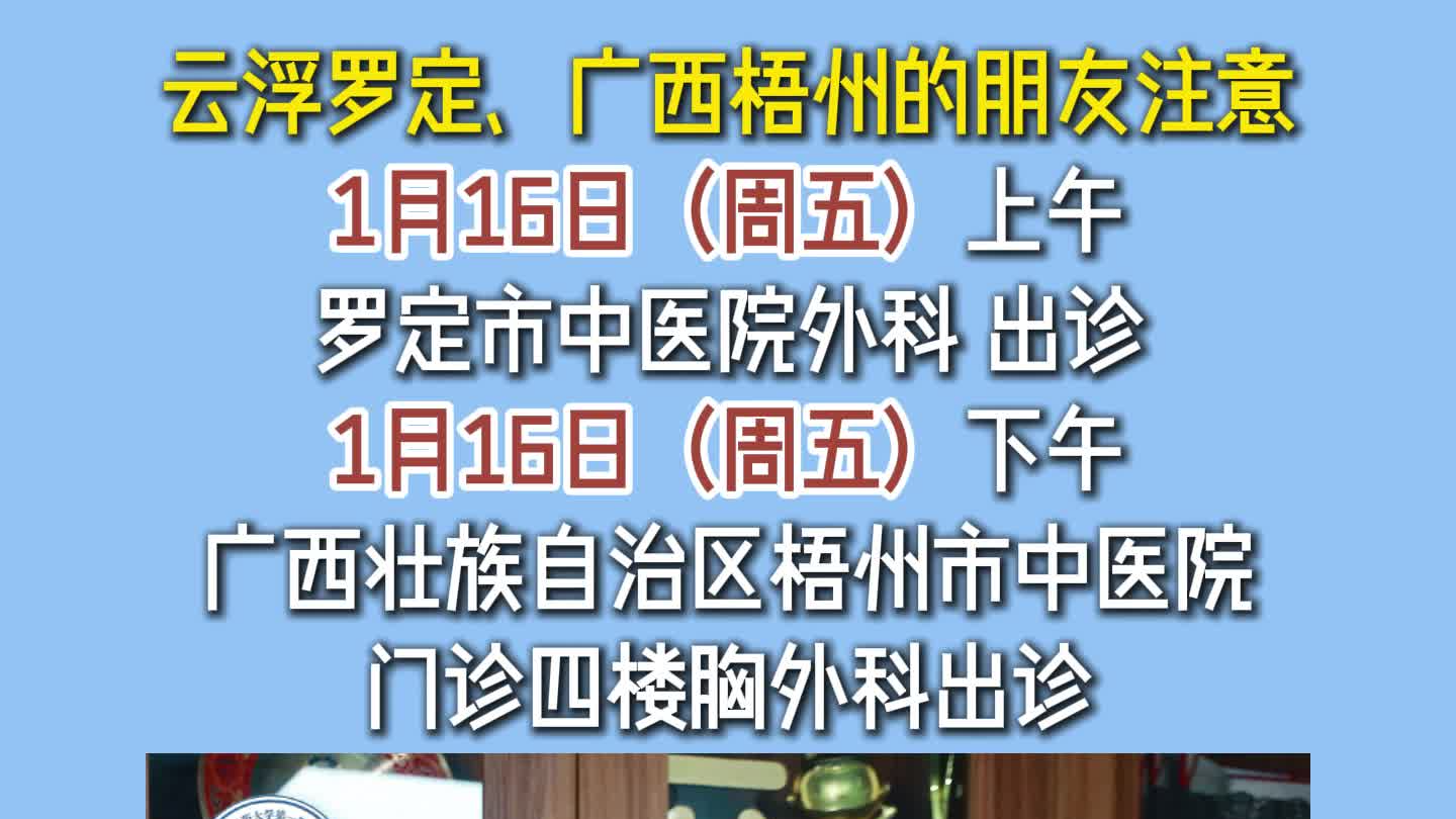 本周五在云浮罗定、广西梧州出诊,有需要的朋友可以就近挂号