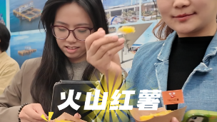 “‘十四五’广东成就”湛江专场新闻发布会上,火山红薯吸引媒体记者品尝