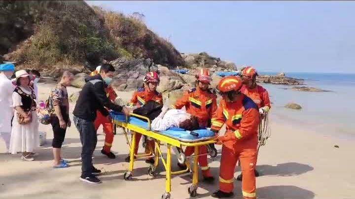 游客礁石滩摔伤被困,惠东消防联动医护紧急救援