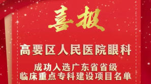 高要区人民医院眼科入选广东省省级临床重点专科建设项目名单