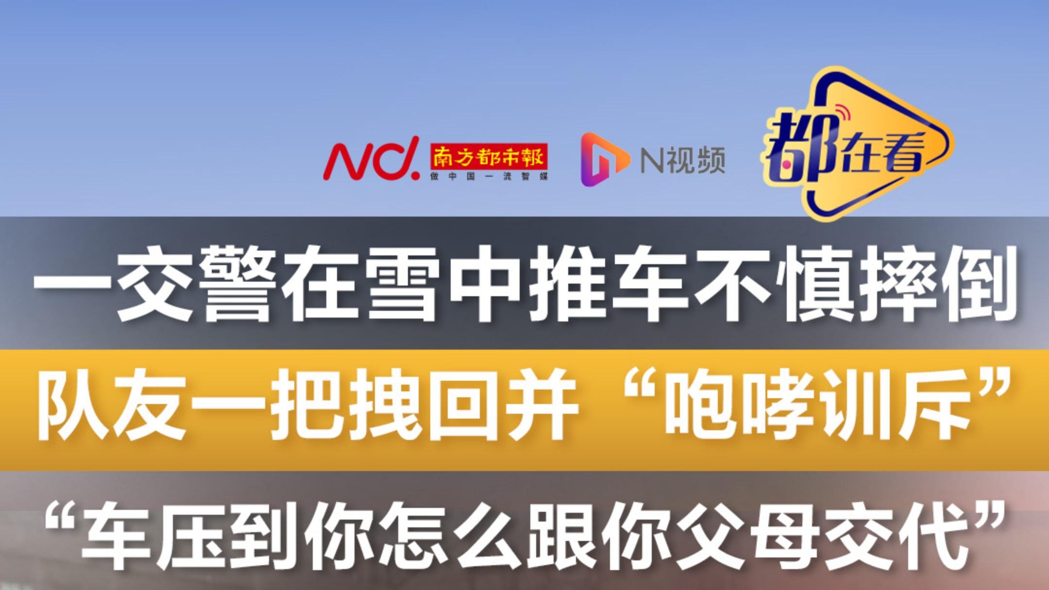 一交警在雪中推车不慎摔倒,队友一把拽回并“咆哮训斥”
