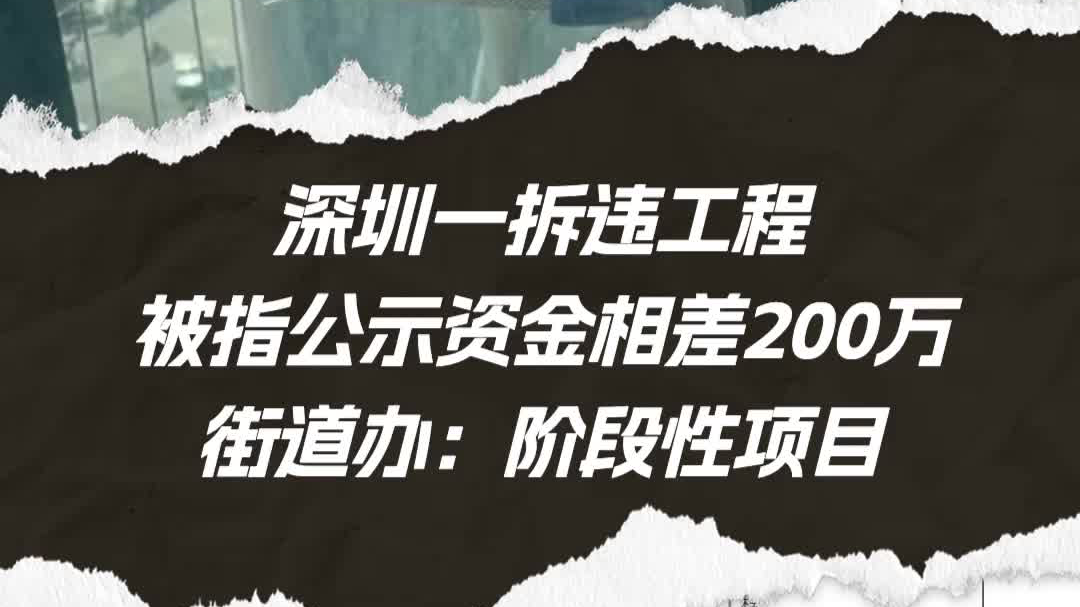 深圳一拆违工程被指公示资金差200万,街道办:阶段性项目