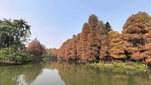 龙洞琪林1986年羊城八景之一,秋冬季湖边落羽杉美不胜收