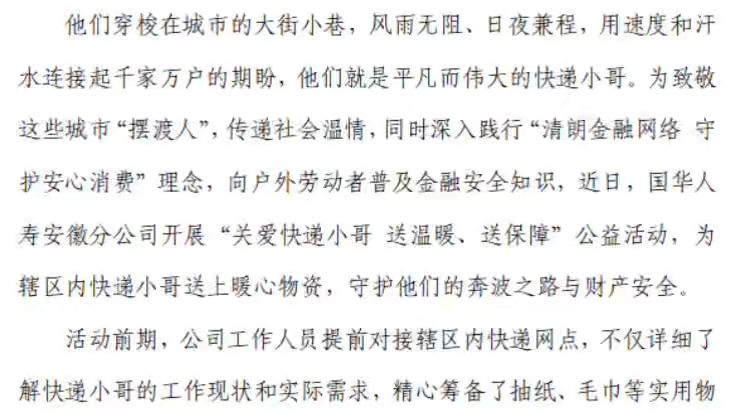 情暖快递小哥 守护奔波之路——国华人寿安徽分公司