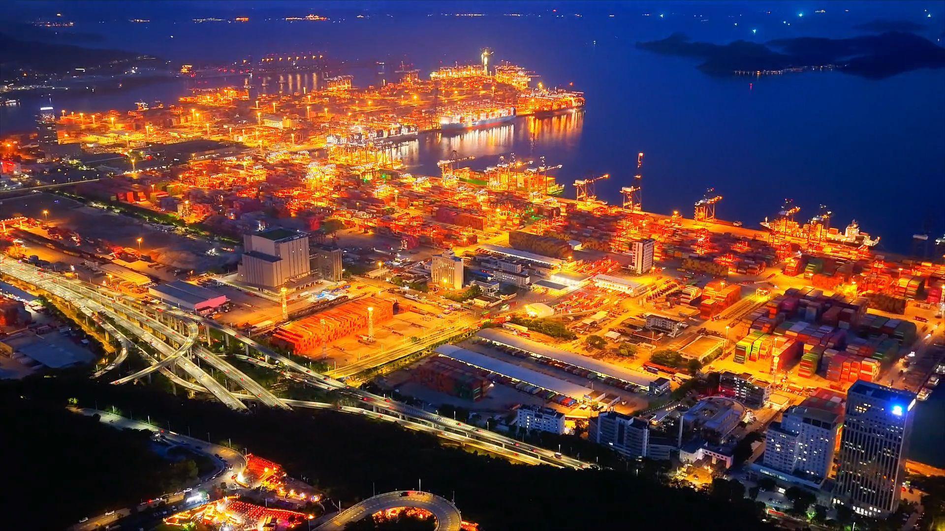 俯拍深圳盐田港夜景