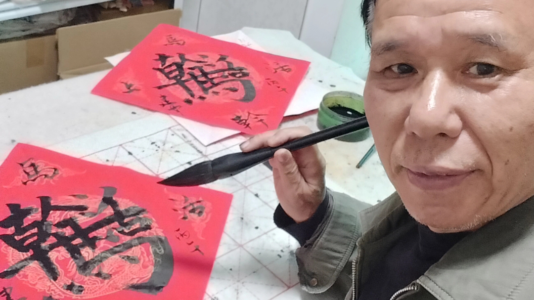 我的组合字马上开工。 丙午新春初八启,挥毫泼墨书