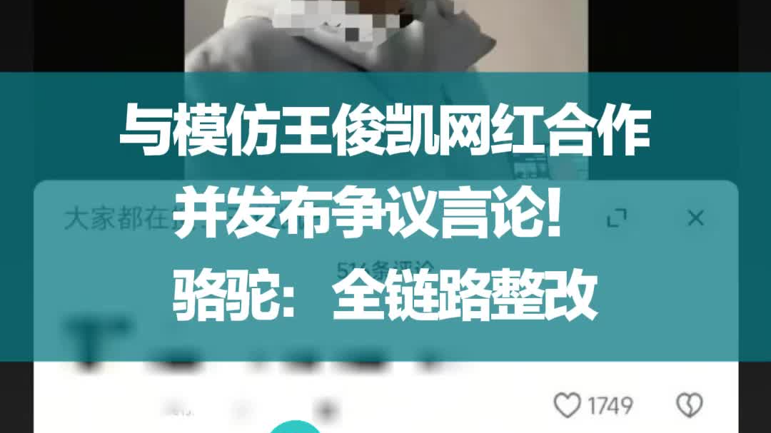 与模仿王俊凯网红合作,并发布争议言论!骆驼:全链路整改